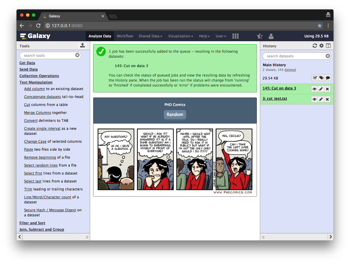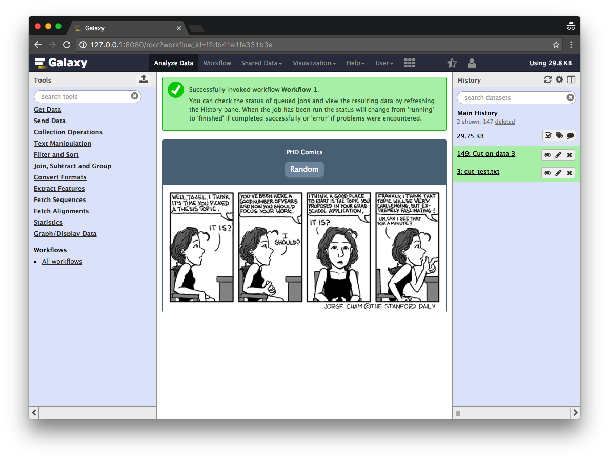 Tool and workflow: A comic strip can be shown when a tool or a workflow is running. Right now PhD and XKCD comics are provided.